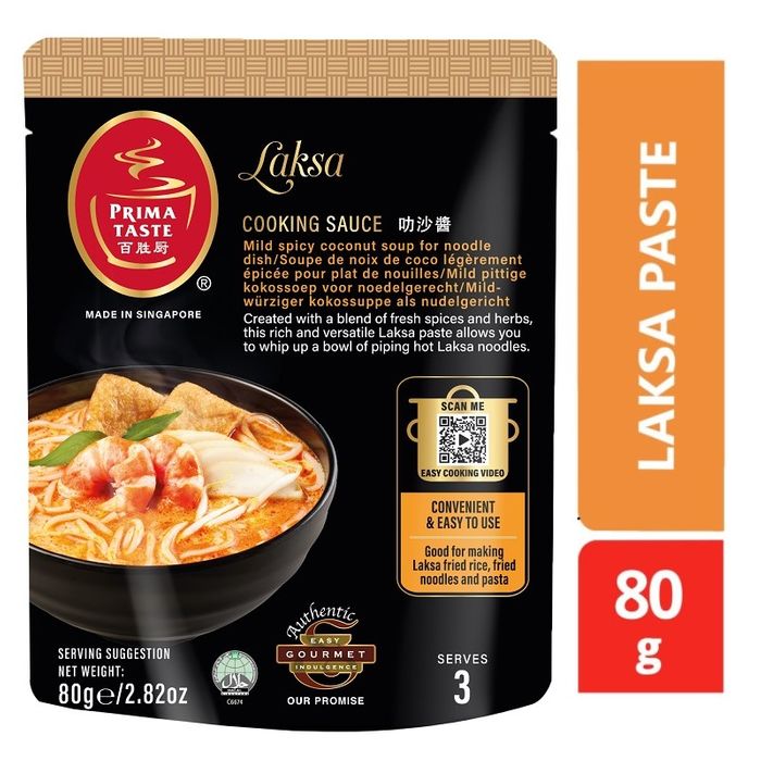 PRIMA AA LAKSA PASTE is created with a blend of fresh spices and herbs, this rich and versatile Laksa Paste allows you to whip out a bowl of piping hot Laksa noodles or a plate of of stir-fried Laksa fried rice. No added preservatives, artificial colouring & flavouring. No MSG added.