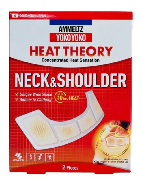 AMMELTZ YOKO YOKO HEAT THEORY NECK & SHOULDER's heat action lasts for up to 10 hours. (According to our independent test. The duration may differ according to storage conditions and usage environment). The unique neck contouring 'U-shape' provides warming effect to both the back and sides and shoulders. Simply open the sachet and apply to your clothing or underwear whenever you need. Non-medicinal, fragrance-free, and with a thin and discreet design, AMMELTZ YOKO YOKO HEAT THEORY NECK & SHOULDER provides a convenient way to warm up your neck and shoulder.